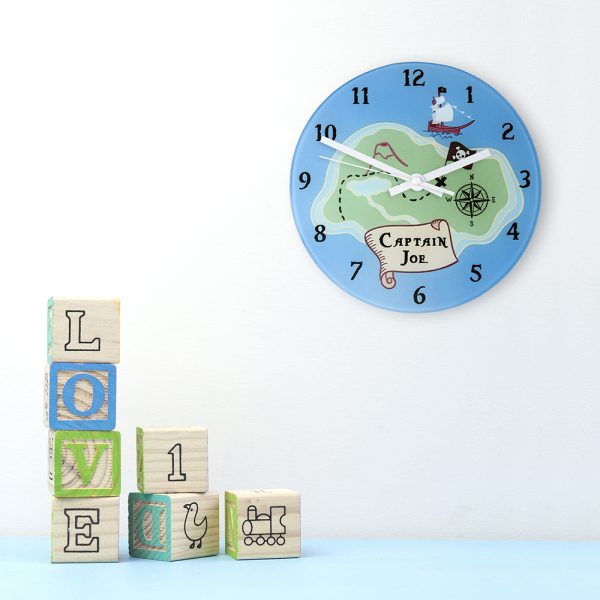 This treasure map themed pirate clock is a fantastic gift for a little one who loves all things nautical.