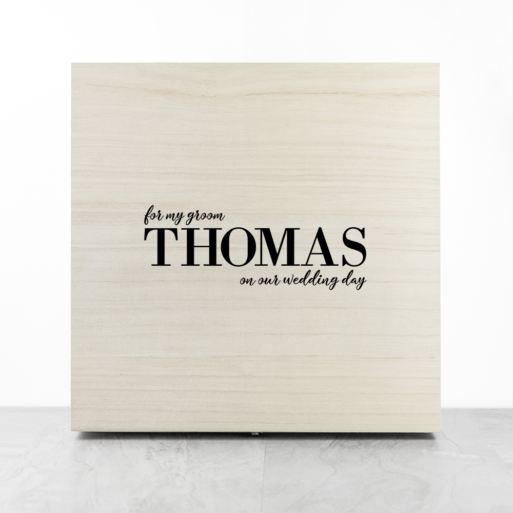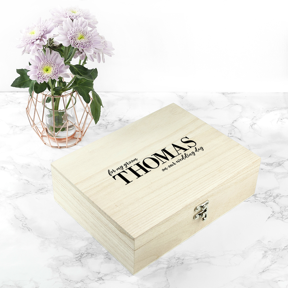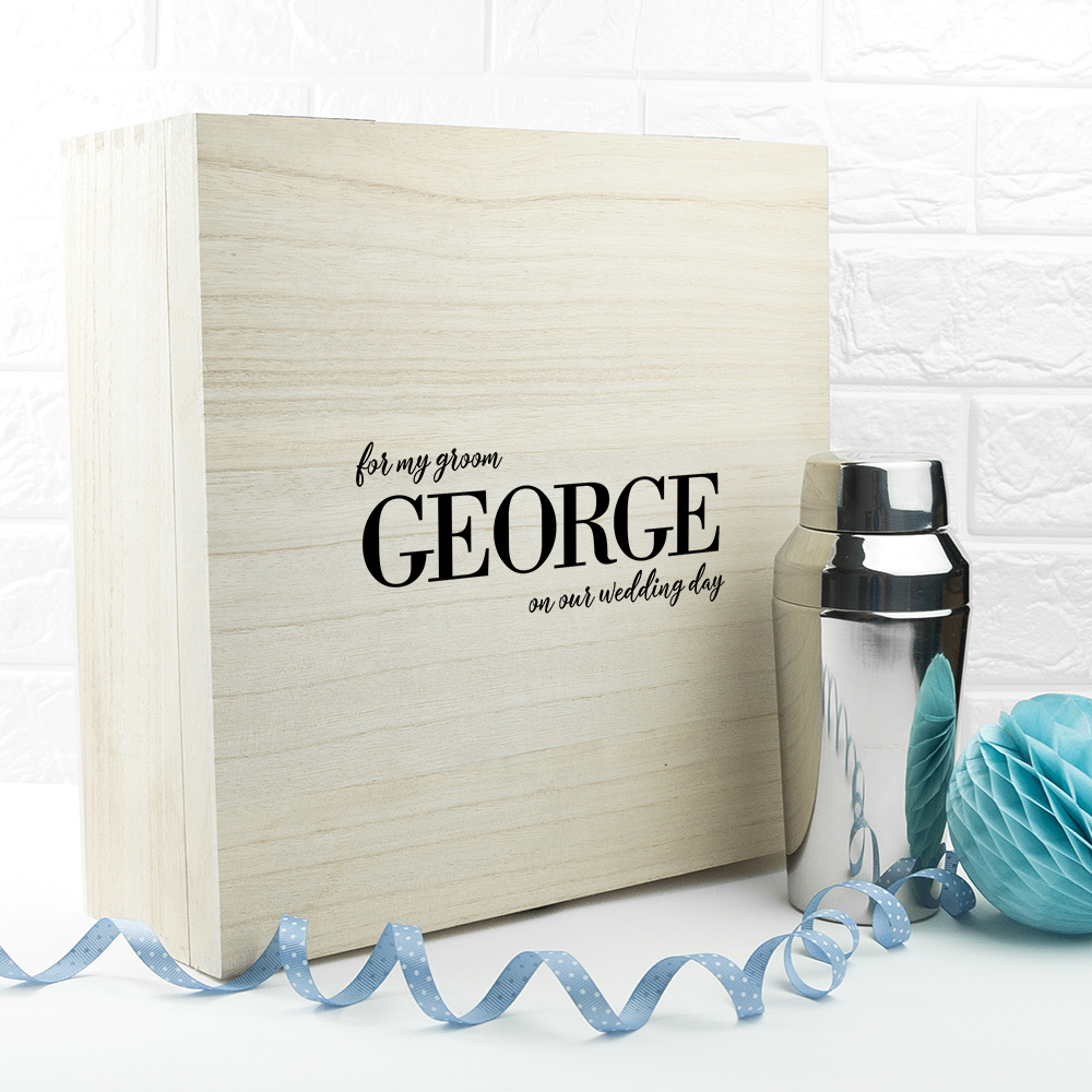 Treat your favourite person and show your love for him in style, with this unique pine ‘For My Groom’ wedding box.