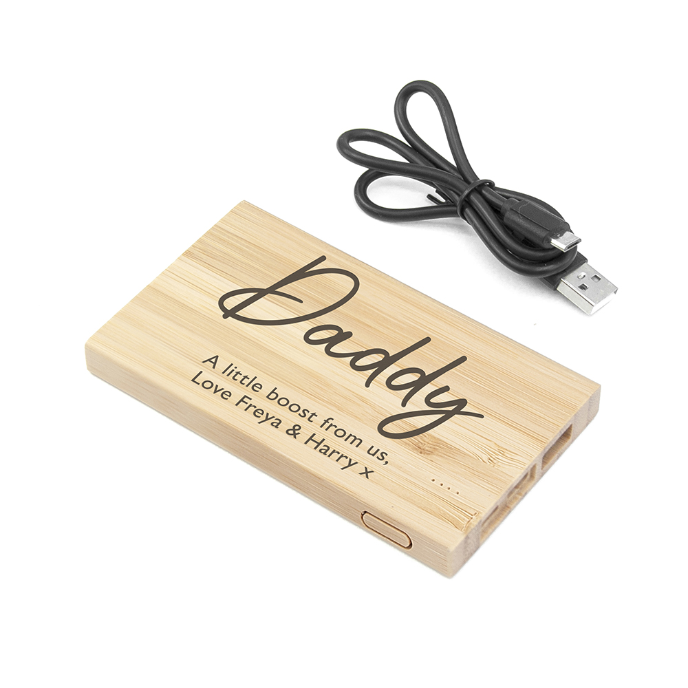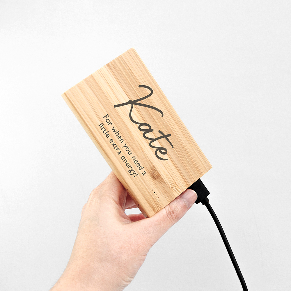 Get yourself or a loved one a personalised engraved bamboo powerbank, perfect for when you (or your precious devices) need a boost.