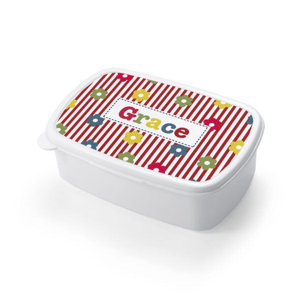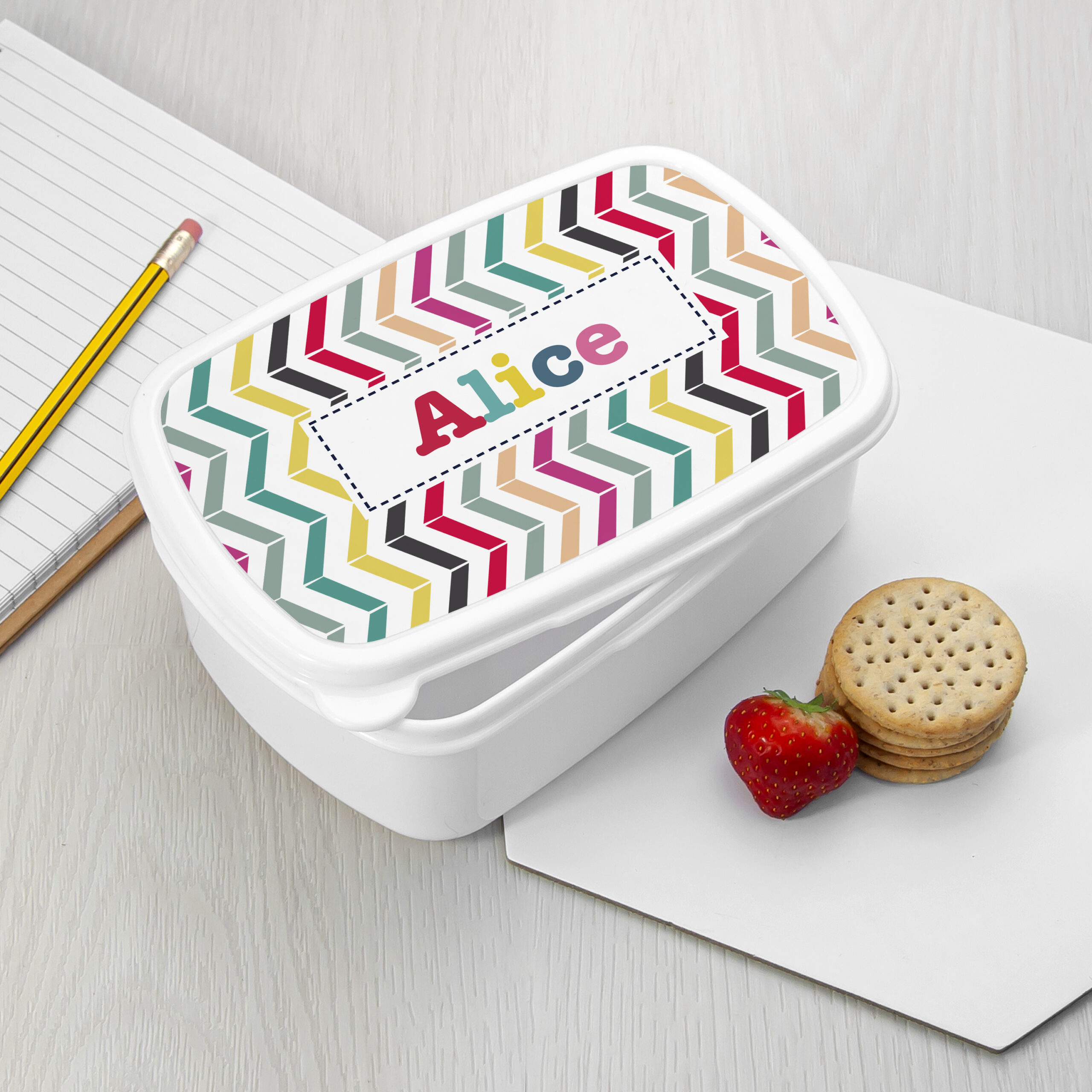 Add colour and vibrancy to your childโs lunchtime with our eye-catching Personalised Girlโs Patterned Lunch Box. It makes a wonderful birthday or Christmas gift that sheโll love taking to school every day.
