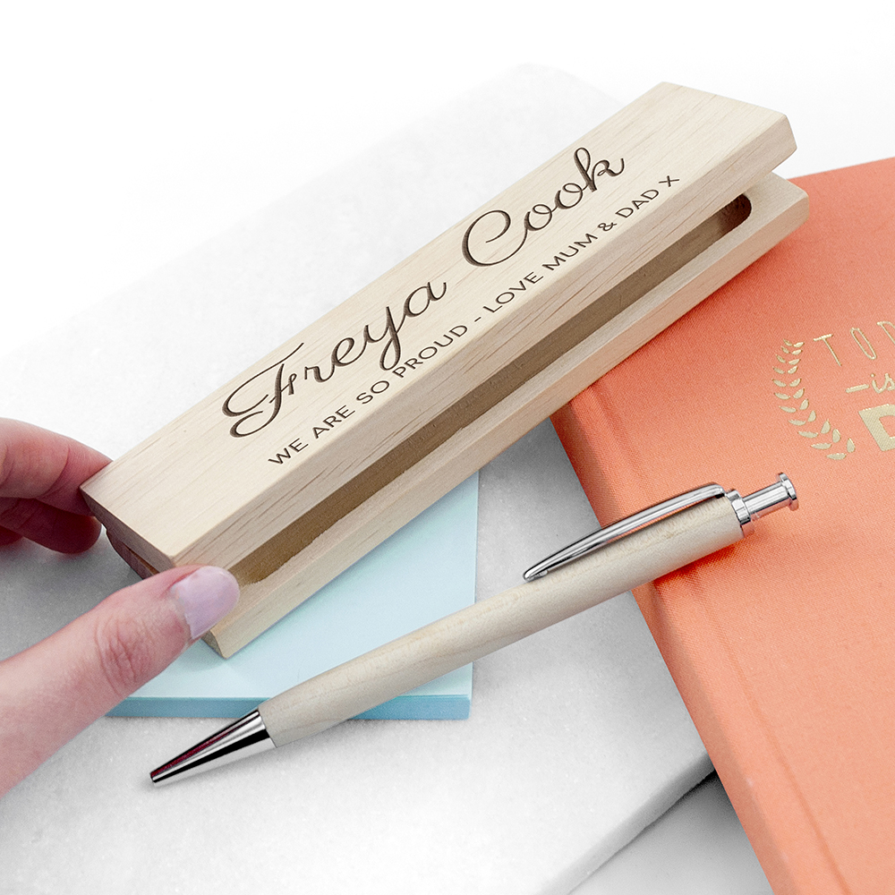 Write to your heart’s content with our gorgeous wooden pen set. Personalise with a name and their degree to mark a truly special moment.