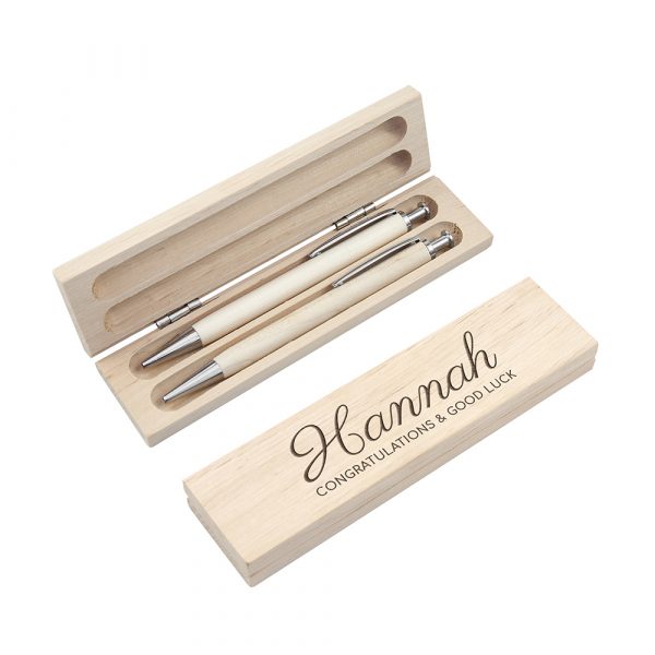 A set of two stunning wooden ballpoint pens that come with a decorative keepsake box. A gift to treasure and celebrate their achievement!
