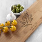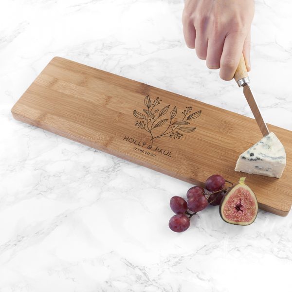 The happy couples serving board can be given to a couple of your choice and you can add the couple’s name to go along with the wonderful engraved floral design.