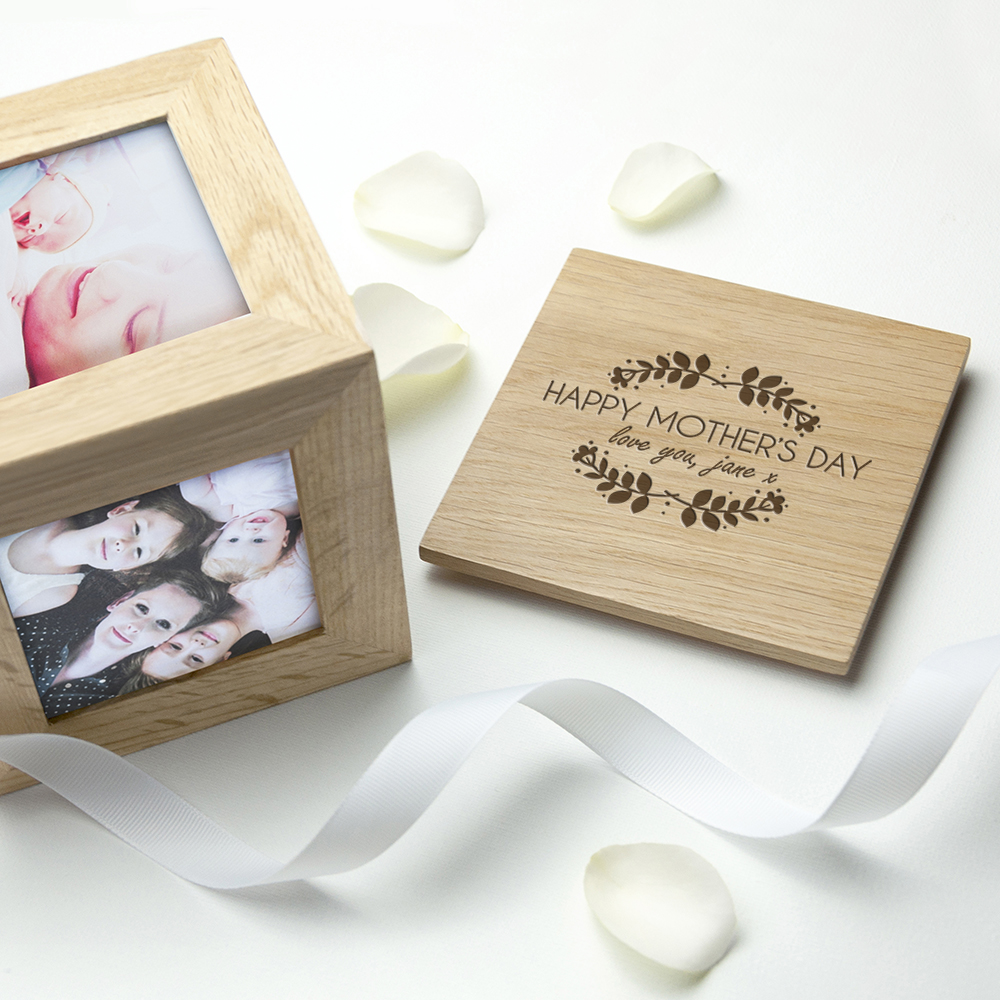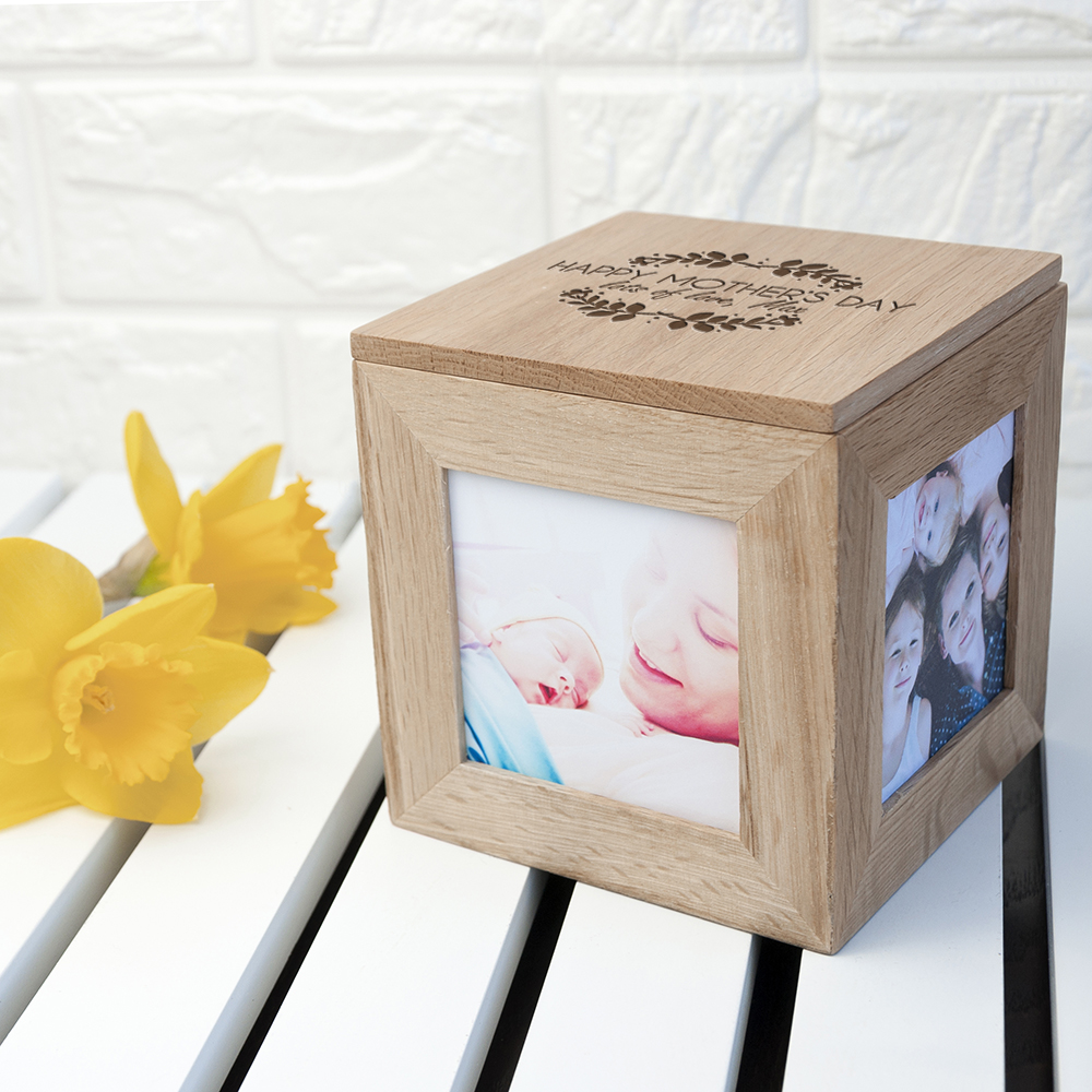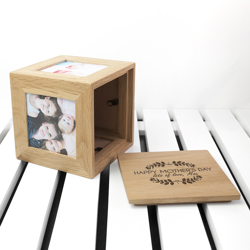 Display your favourite memories with your mother using this beautifully crafted engraved oak photo cube; perfect for Mother’s day!
