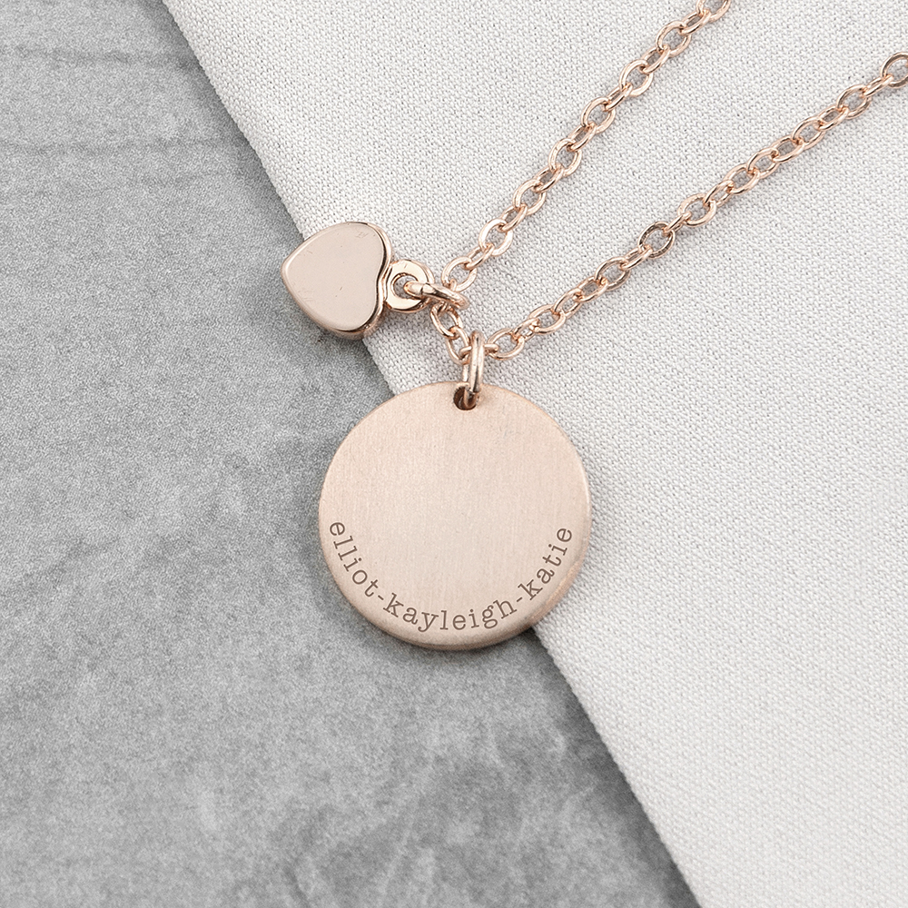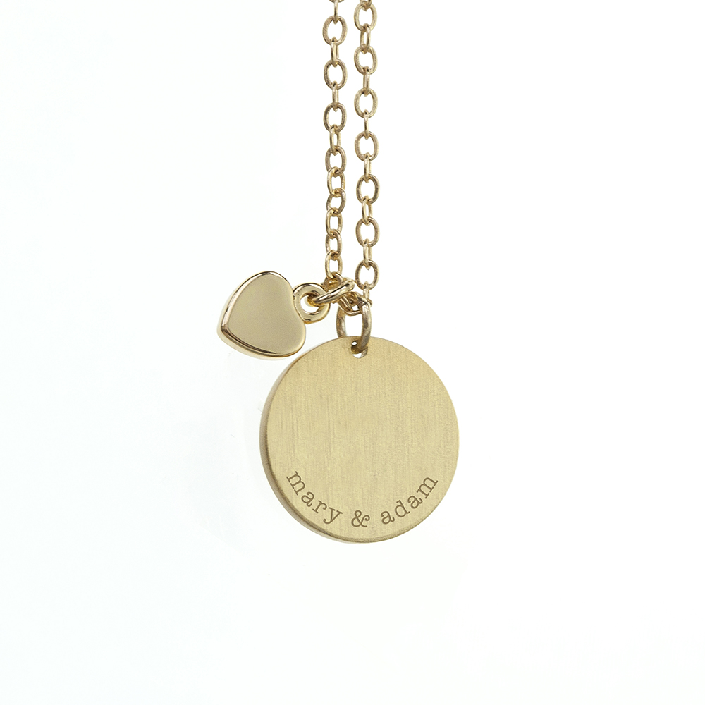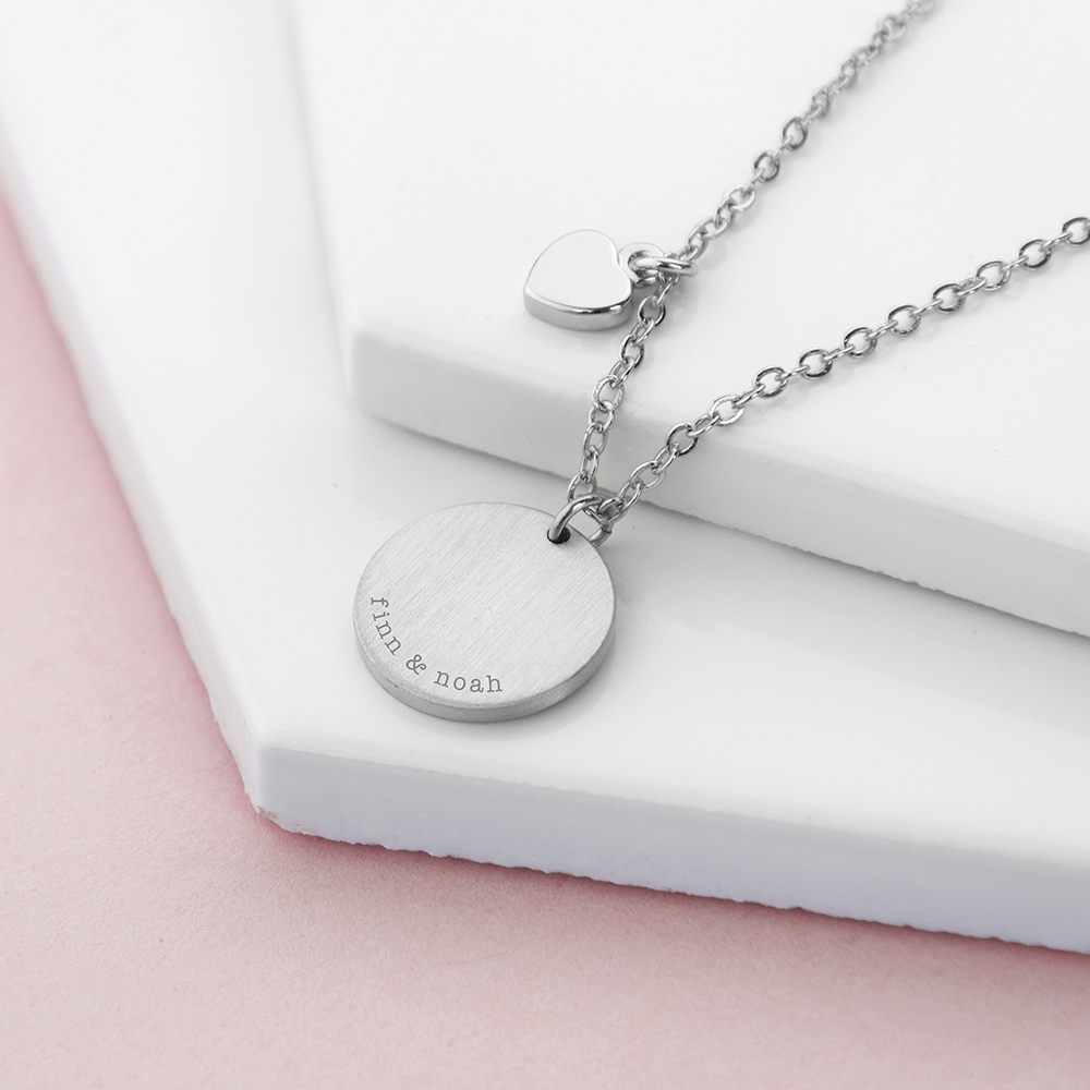 This personalisable disc necklace with heart charm is an elegant necklace and a lovely gift to someone special.