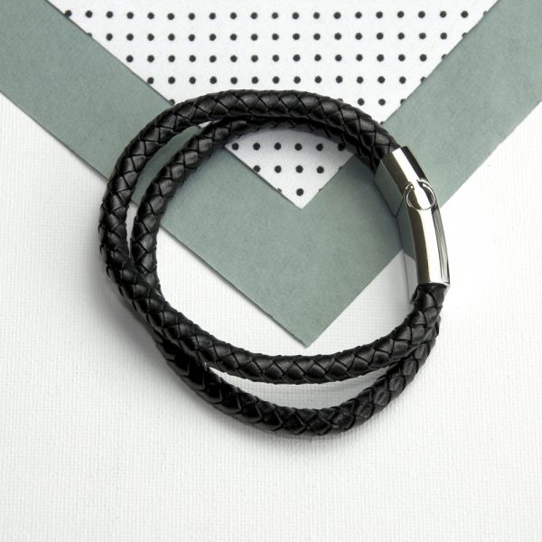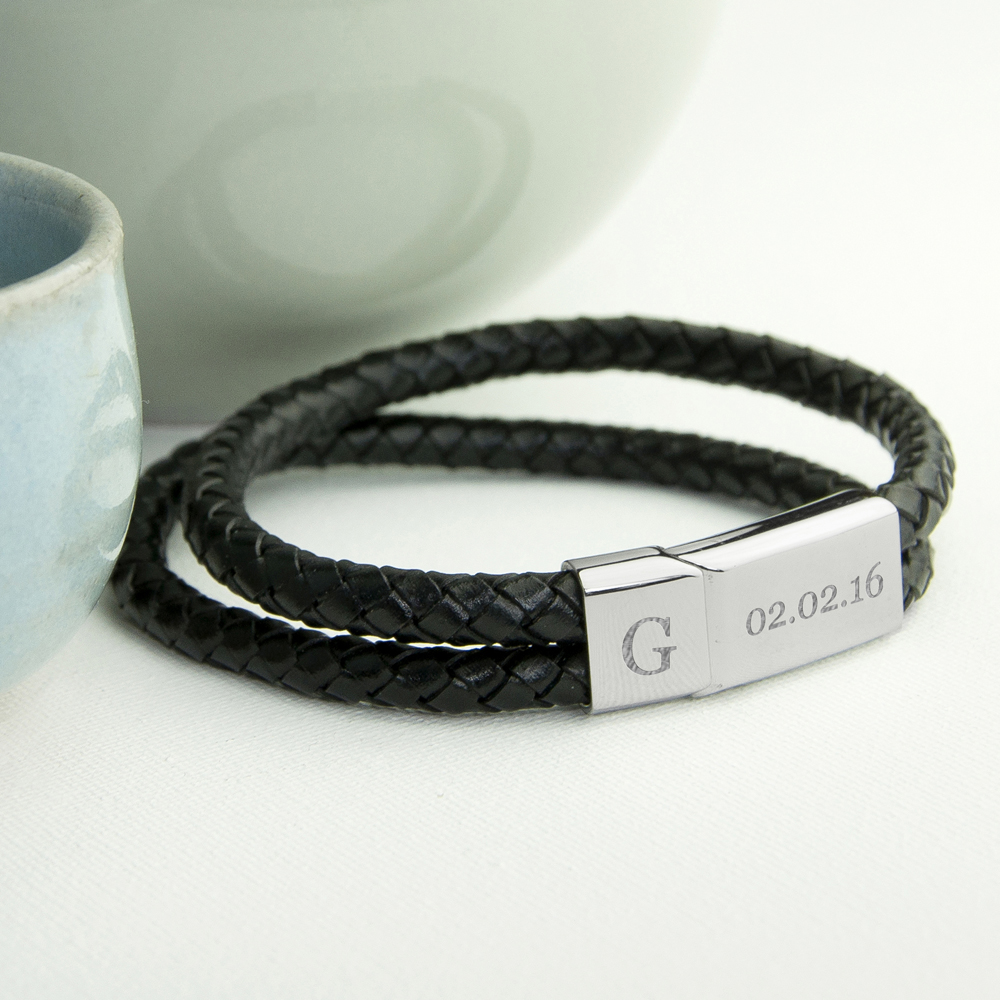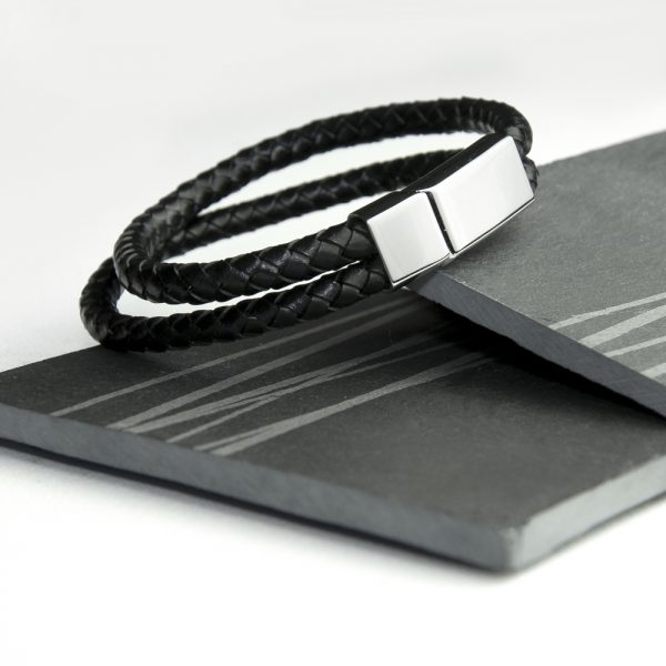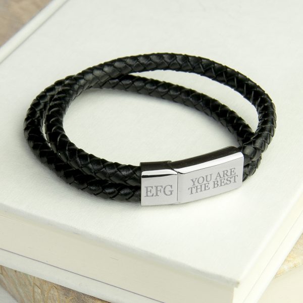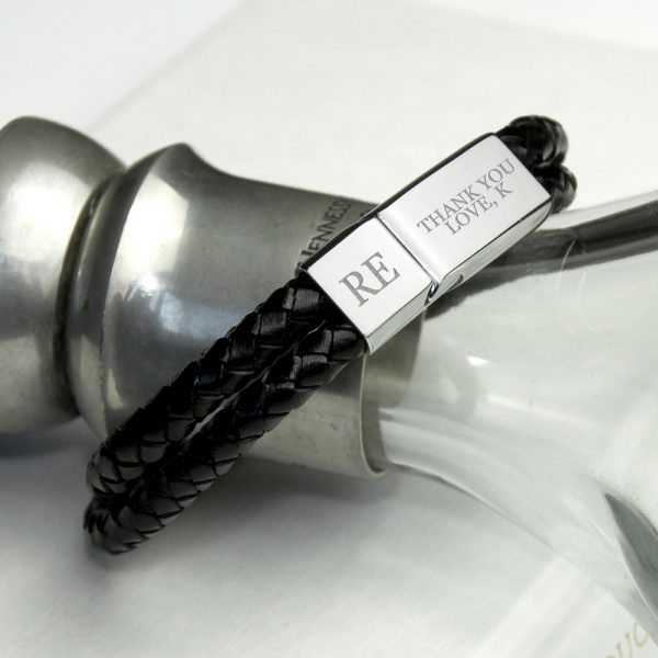 This dual leather woven bracelet in a stylish black can be personalised in two ways, initials and a short message. The bracelet is made from treated, hard-wearing woven leather and has a distinctive clasp for added security as well being easy to wear.