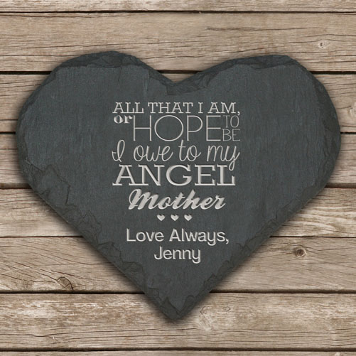 Created with locally produced and eco-friendly Welsh slate, this gorgeous piece is engraved with the words ‘All that I am or hope to be I owe it all to my angel mother’; personalised with your name of up to 8 characters.