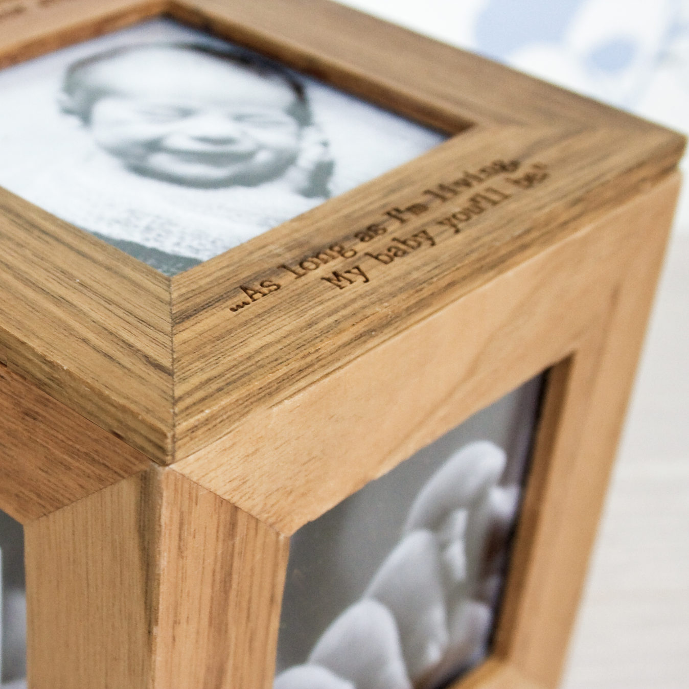Display your favourite memories with your friends and family using this beautifully crafted engraved oak photo cube; perfect for all occasions!