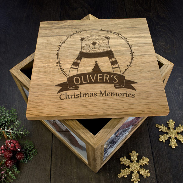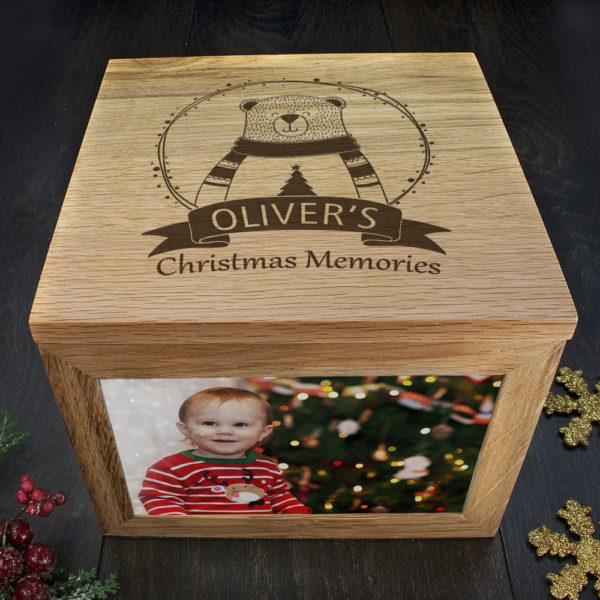 This adorable polar bear woodland-themed piece with a festive twist creates a remarkable Christmas keepsake box, to gather all of your most precious memories for years to come.