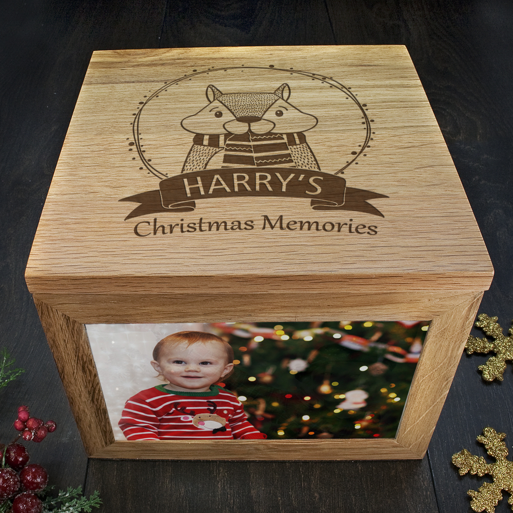 This adorable chipmunk woodland-themed piece with a festive twist creates a remarkable Christmas keepsake box, to gather all of your most precious memories for years to come.