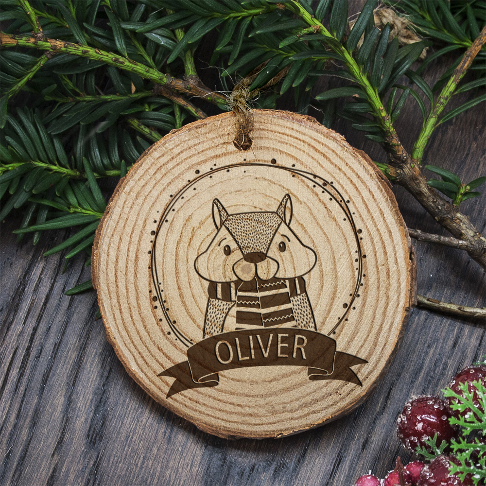 This adorable woodland-themed decoration with a festive twist is a lovely Christmas keepsake, that can be personalised with any name of up to 12 characters.