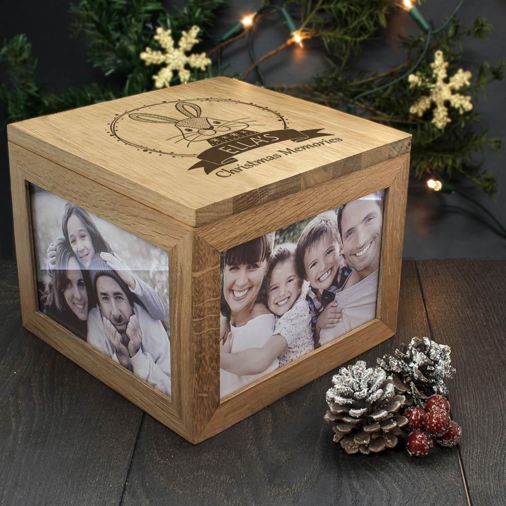 This large solid oak box is made from natural wood, which reveals the natural grain once engraved and personalised to your liking of up to 12 characters. Containing space for four large photos and a removable lid, to fill the box with cards, gifts, sweets, and much more!
